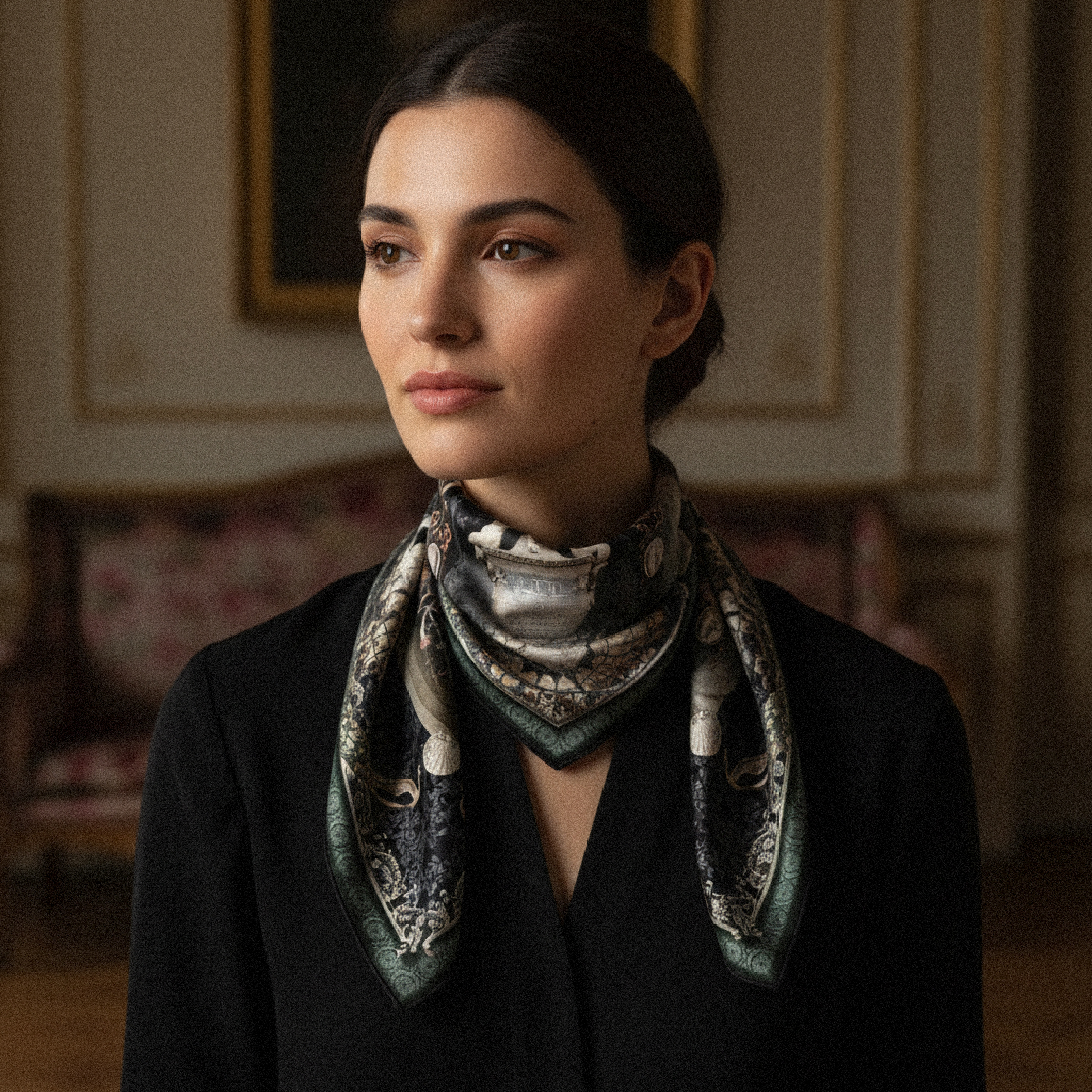 Od 19.04 do 30.04.2026 r. otwieramy wyjątkową przedsprzedaż czarnej wersji kolekcji jedwabnych apaszek inspirowanych Łazienkami Królewskimi.